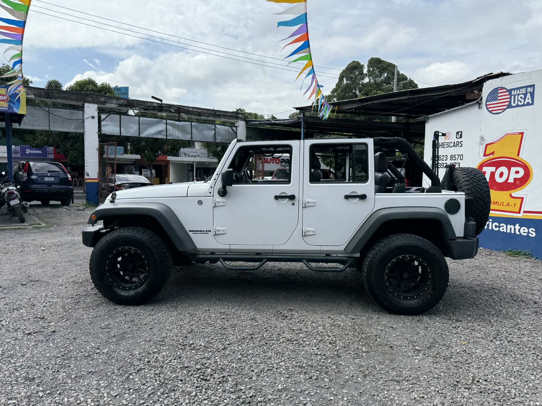 Jeep Wrangler Unlimited 2012, 4×4, 3.6cc 6 cilindros, Automático, Descapotable, Radio Alpine con Bluetooth, Equipo de sonido Alpine, Aire acondicionado, Aros de magnesio Rin 17, Aros American Racing, Llantas Nuevas LT, 4 Frenos de Disco, Estribos, Tricket Hi-Lift, Neblineras, Tapicería de cuero, Retrovisores eléctricos, Vidrios eléctricos, Cerradura central